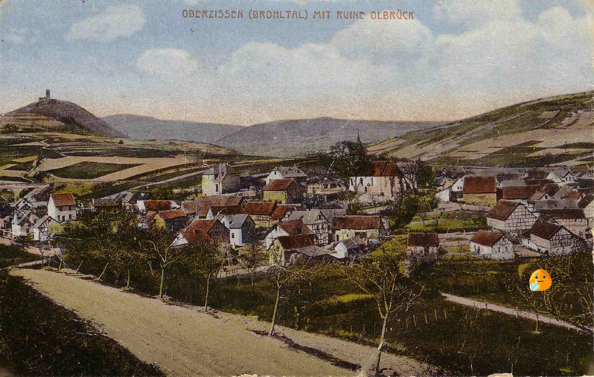 Oberzissen im Brohltal mit Ruine Olbrück 1930